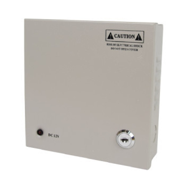 Блок питания импульсный, выход: +11-14 В / 5 А, клеммник; вход: ~175...240 В, клеммник; металлический корпус с крышкой и замком. 4 канала нагрузки, отдельные фильтры, отдельные предохранители по 1.25 А на каждый канал. Размеры 163 х 163 х 48 мм.